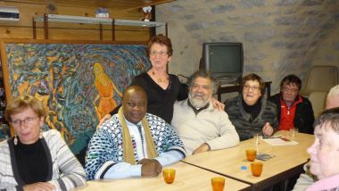 Mardi 20 décembre, M le Maire de Ste Enimie accompagné de son épouse, son 1er adjoint Alain et de Raymonde Lebois présidente de « Peuples Solidaires » à Marvejols, nous a fait l'honneur et le plaisir de nous présenter Semana Ganou , Maire de SIBY au Burkina Faso. La rencontre a été chaleureuse et les échanges fructueux. Comme l'a fait remarquer Rachel, ce peuple vit comme nous il y a 60 ans, ce qui est révoltant quand on compare avec notre bien-être actuel...L'association « peuples solidaires » dont font partie François et Martine a un idéal qu'ils ont partagé avec nous: que le monde et les peuples soient plus solidaires...que les riches soient moins riches , que les pauvres soient moins pauvres et qu'aucun habitant de la planète ne connaisse la faim.. A SIBY, ils partagent avec M.le Maire un programme de réparation des forages car l'eau est là-bas un véritable problème ! Mais aussi un programme d'alphabétisation, d'achats de tables-bancs, de plantations d'arbres,de fabrication de savons etc...Nous avons été vraiment touchés par tous ces besoins et avons décidé de participer à l'achat de tables-bancs pour les jeunes écoliers qui ont envie d'apprendre et n'hésitent pas à parcourir des kilomètres à pied pour se rendre à l'école ,comme le faisaient autre fois nos grands-parents, quitte à rester assis par terre toute la journée...dans une classe de plus de 80 élèves pour un seul maître et... sans électricité, ni eau courante, des latrines au fond de la cour !...quand on pense que des parents de Ste Enimie se plaignent de ne pas avoir l'eau chaude aux lavabos du préau !. Ils ont sans doute raison, mais quelle différence !...à vous donner »la chair de poule » !