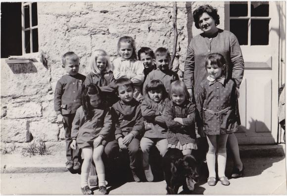 1er rang assis : Lucette Domeizel, Michél Commandré, Jocelyne Piédalu, Nadine Lassale (fille d'un gendarme), debout devant Mme Rousson Catherine Gausse