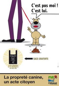 il est rappelé aux propriétaires de chiens que la loi interdit de laisser divaguer un animal domestique et que leur responsabilité est systématiquement et entièrement engagée !! « Une crotte dans un sac ou une amende dans la poche ?»
